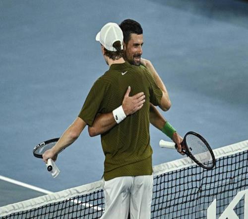 当这场五盘大赛以老天王的胜出完结,德约科维奇来到网前与辛纳拥抱致意,其间他对后辈说了一句话,“感谢你至少让我可以赢一次。”